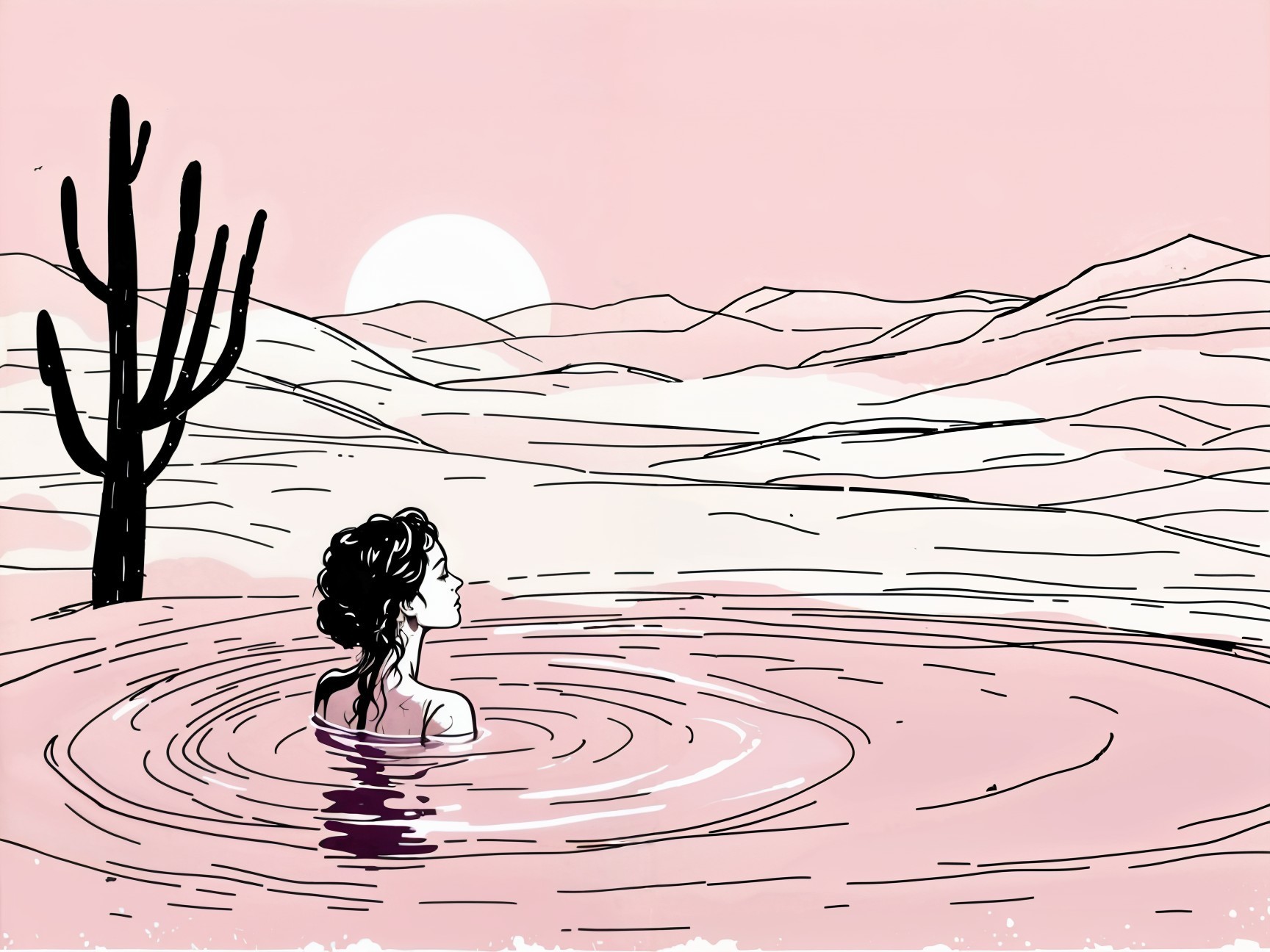 Prompt: Paint a dreamy hazy breezy wet on wet watercolour artwork, using minimal paints and maximum loose water effects, EmmAI autumnal colour palette, melancholy composition, minimalist, impressionist, with no text, no artifacts. A dreamy and ethereal scene featuring a side profile of a beautiful East Asian woman with long, flowing hair and a delicate veil. She gazes serenely at a large, glowing full moon reflected on a tranquil sea at twilight, surrounded by a starry night sky. In the background, faint silhouettes of distant forest create a mystical atmosphere, blending soft purples, blues, and hints of silver in the sky and water, evoking a sense of calm and wonder.