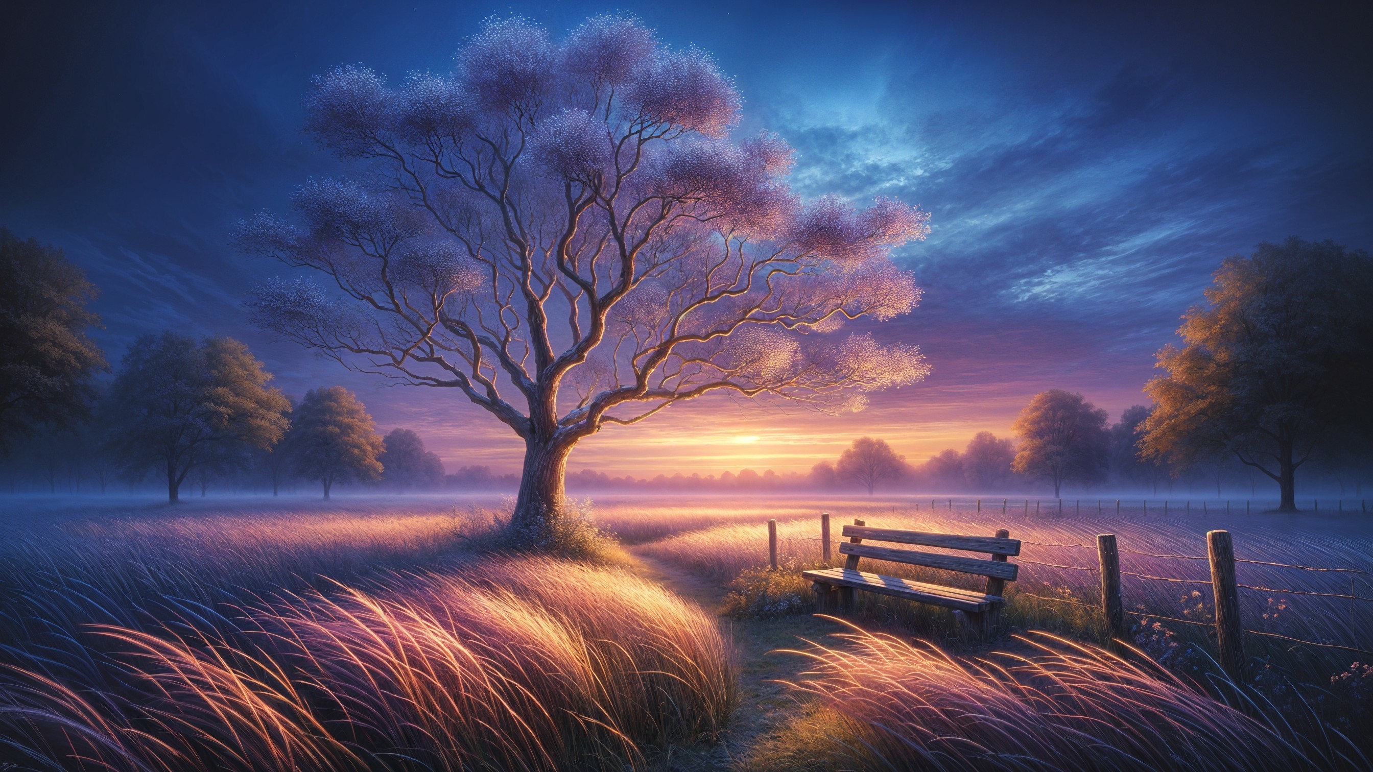 Prompt: A fairytale wooden cottage with a steep frosted roof and glowing golden windows stands beside a frozen stream under a deep blue winter night sky filled with countless stars. Snow blankets the ground, weighs softly on the porch and railings, and glitters faintly in silver moonlight. A wooden bridge arches over the ice, its planks dusted with fresh powder, while icicles hang long and glassy from the eaves. The cottage radiates warm amber light through frosty windowpanes, casting soft reflections across the ice. Smoke rises lazily from the chimney, drifting into the still, cold air. In the distance, tall windmills stand silent and snow-covered against the starlit horizon. Evergreen trees shimmer with frost, and the world is hushed — a peaceful winter night of magic, starlight, and quiet wonder.
