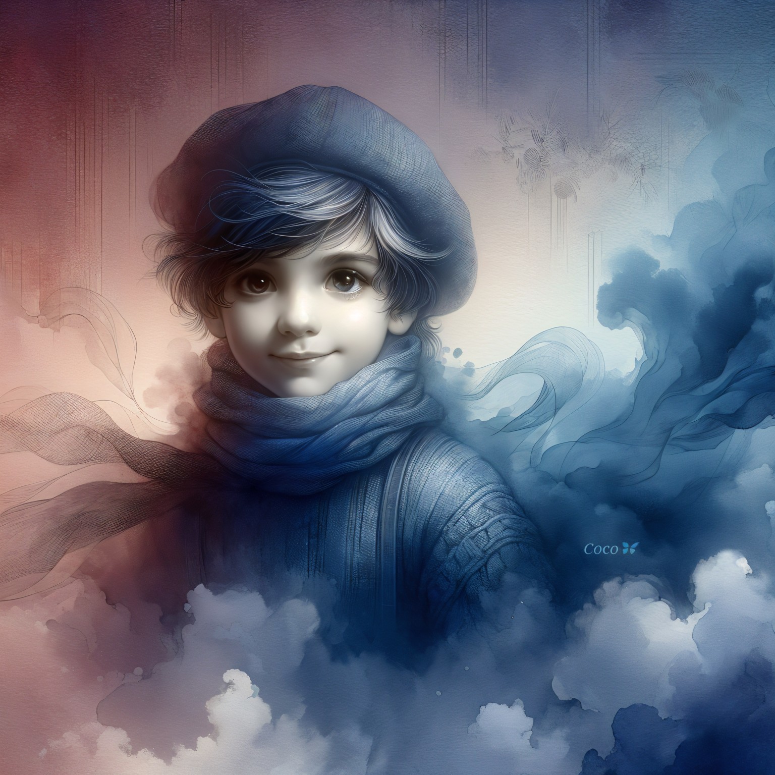 Prompt: Voilier dans la tempête, voiles déployées, double exposition artistique, fusion voilier-voiles, ange vêtue de blanc au cœur des voiles, paysage océan et vagues en arrière-plan, reflets de phare lointain lumière de secours, ambiance crépusculaire, nuances de couleurs dégradées de turquoises, bleues clair,bleu marine, ciel lourd, nuageux et brumeux, effet réfractographie photonégative, format 16:9 large, détails saisissants, contraste fort, jeu de lumière subtil, atmosphère mélancolique et captivante.