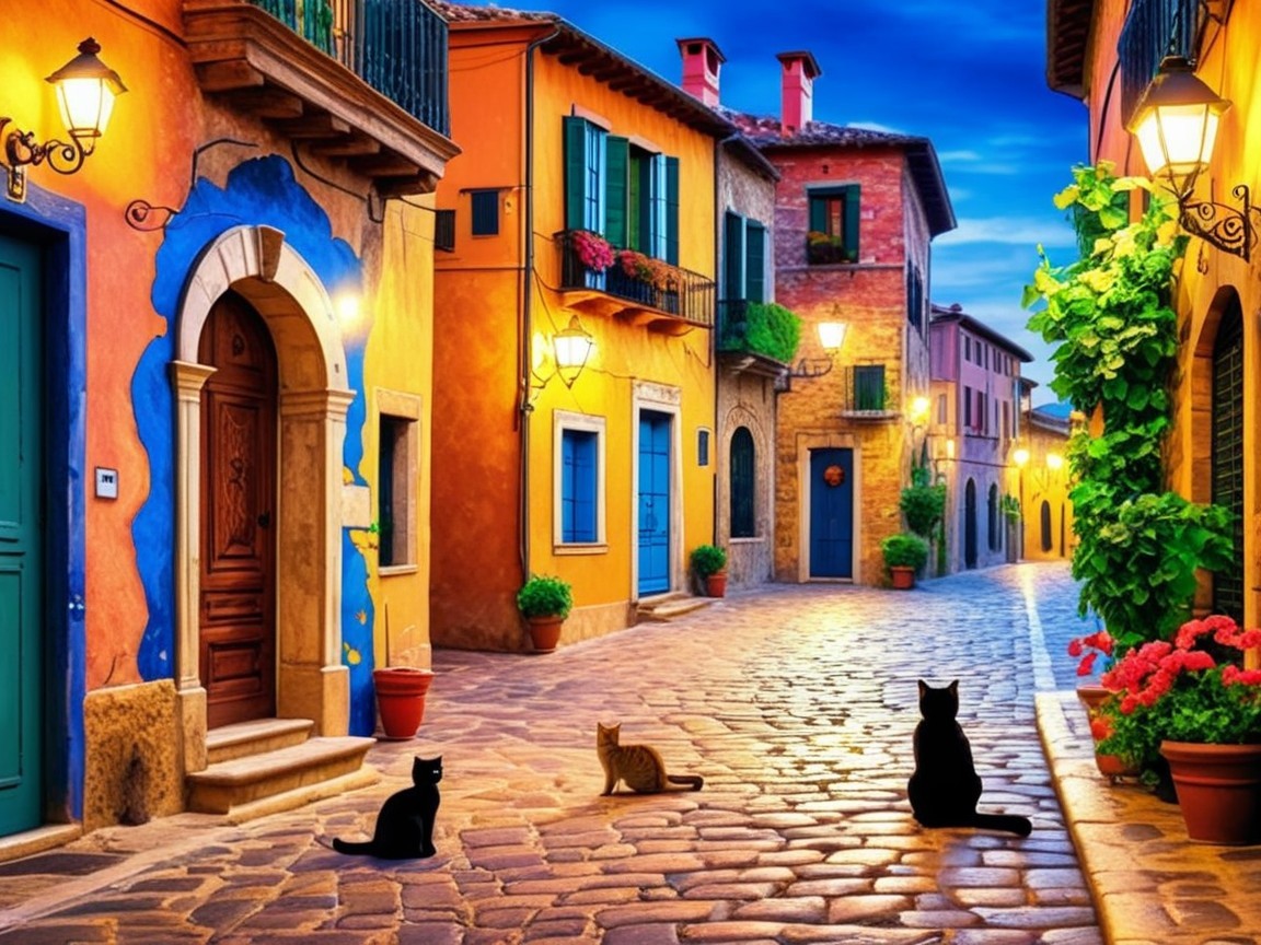 Prompt: A fairytale wooden cottage with a steep frosted roof and glowing golden windows stands beside a frozen stream under a deep blue winter night sky filled with countless stars. Snow blankets the ground, weighs softly on the porch and railings, and glitters faintly in silver moonlight. A wooden bridge arches over the ice, its planks dusted with fresh powder, while icicles hang long and glassy from the eaves. The cottage radiates warm amber light through frosty windowpanes, casting soft reflections across the ice. Smoke rises lazily from the chimney, drifting into the still, cold air. In the distance, tall windmills stand silent and snow-covered against the starlit horizon. Evergreen trees shimmer with frost, and the world is hushed — a peaceful winter night of magic, starlight, and quiet wonder.