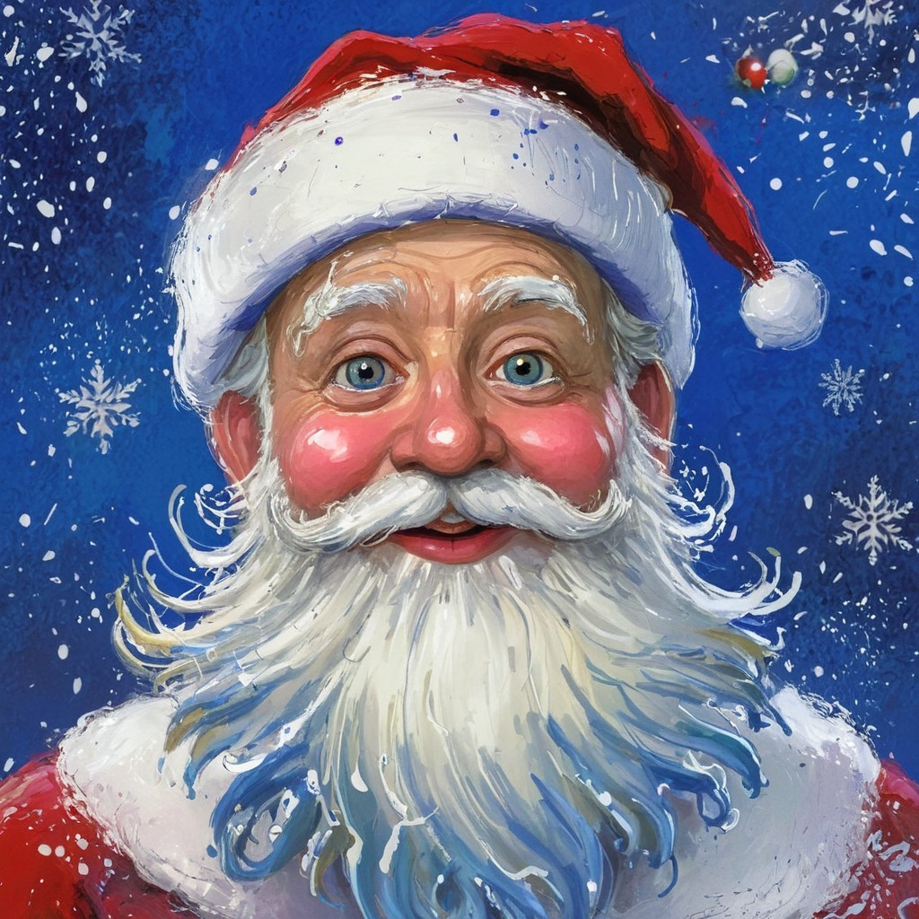 Prompt: Gothic Christmas theme, artistic acrylic painting with thick Gothic textures combined with very wet oil paint, depicting a close-up of Santa Claus wearing a red, white, and black Gothic-style Christmas hat and a long cape in the same style. He carries a sack filled with Gothic-style gifts on his back. The background is a magnificent winter landscape with thick layers of snow, framed by Christmas trees illuminated with ultra-bright little lights and decorated with garlands and multicolored Gothic-style baubles, surrealism Salvador Dali matte background melting oil on canvas, trending on Artstation Unreal Engine 3D shading shadow depth, ethereal fantasy hyperdetailed mist Alphonse Mucha, gothic art, romanticism