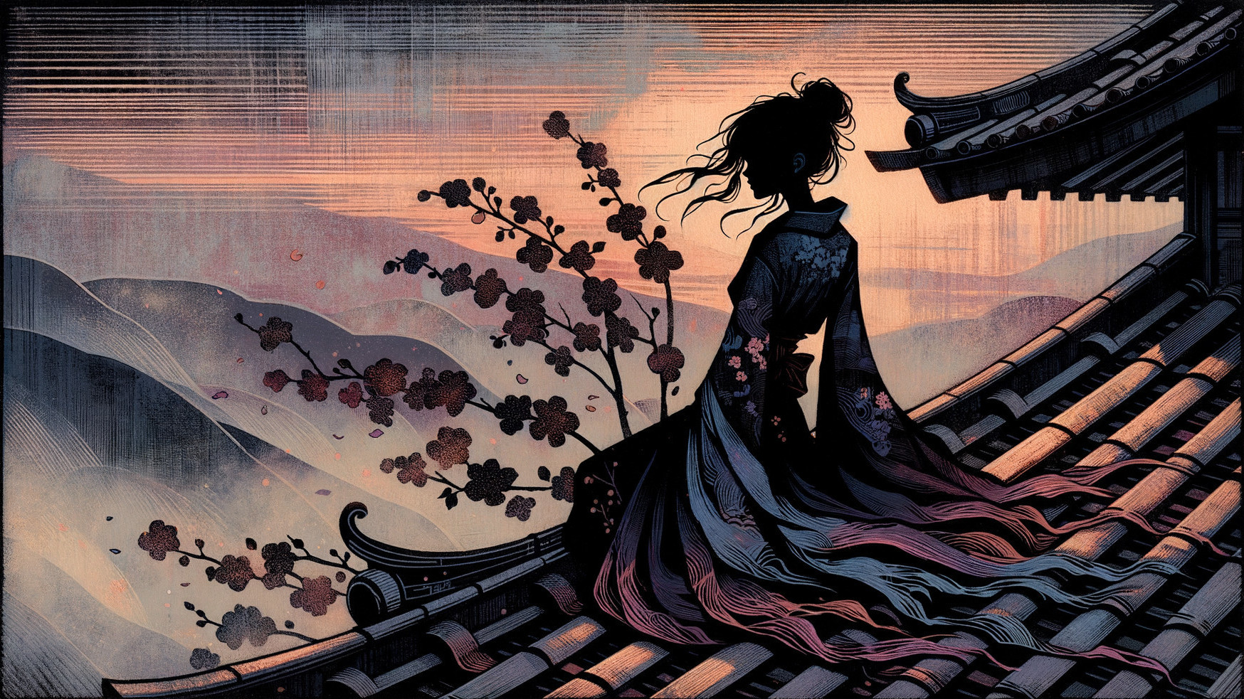 Prompt: Gouache and pastel on cream canvas. A dramatic, wide-angle digital painting captures a solitary female figure standing at the precipice of a sheer, rocky cliff face, her ethereal white gown billowing outwards as if caught by a phantom wind. The woman, with long, flowing blonde hair, is depicted in profile, her head tilted back and face turned towards a turbulent, storm-laden sky, embodying a sense of awe and freedom. Her dress, made of a delicate, sheer fabric that appears almost transparent, cascades around her in fluid, dynamic folds, with shimmering highlights and wisps of light that suggest a supernatural energy. In the foreground, a cluster of vibrant red poppies, some detached and floating, seem to be carried away by the same unseen force, their petals a stark contrast to the muted tones of the environment. The cliff itself is rendered with rough, textured detail, hinting at the raw power of nature. Below and in the distance, a sea of dramatic, dark clouds merges with a soft, golden sunset glow, creating a breathtaking atmospheric perspective. The overall lighting is moody and cinematic, with the dark clouds dominating the upper portion of the frame and the warm light illuminating the distant horizon, casting subtle highlights on the cliff face. The style is painterly yet hyperrealistic, with a focus on textural detail and dramatic lighting. Keywords: epic, fantasy, dramatic, ethereal, cliffhanger, freedom, wind-swept, poppies, stormy sky, sunset, digital painting, masterpiece, cinematic lighting, high detail.