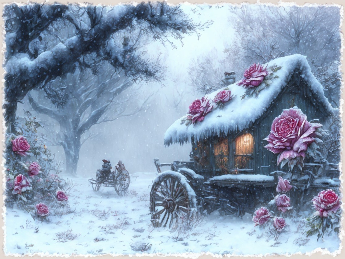 Prompt: Painterly patchwork illustration of a group of five Russian winter babushka puppets, each with their own unique, intricately embroidered traditional clothing and headscarves, stand in a horizontal row, their figures ranging in size from big and large to very small and tiny, as if a painterly brush had swooped across the scene, leaving behind a trail of delicate, swirling patterns in shades of blue and white, reminiscent of frosty mornings and snowflakes gently falling on a winter's day, set against the serene backdrop of a magically enchanted winter forest with a silhouette of a pittoresc Russian church far in the distance where towering trees, their branches heavy with the weight of snow, stretch towards the sky, their limbs etched in delicate, feathery lines, and the air is crisp with the scent of pine and woodsmoke, as the babushkas, their faces aglow with warmth and kindness, stand together, a testament to the enduring spirit of family and community in the face of winter's chill. Russian winter patterns.