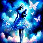 Prompt: A captivating abstract scene depicting the silhouette of a dancer on a dark and intimate dance floor, her feminine form standing out against the soft yellow light, creating an enchanting atmosphere. An artistic scene featuring the silhouette of another dancer in a graceful pose, silhouetted against an abstract background under a soft, bluish light. The soft, elegant lines of the silhouettes contrast and blend harmoniously within a field of cosmic energy, creating visual harmony. Vibrant waves of blue, purple, and gold energy, sprinkled with delicate stars, swirl around the dancers. Subtle lighting highlights the contours of the scene, lending depth and a touch of mystery to the composition. A masterpiece, vibrant colors, exceptional lighting, an impression of infinite movement, mysticism, and surreal beauty, high quality, high resolution, 4K resolution, luminous and dreamlike, like a photograph by Sebastião Salgado