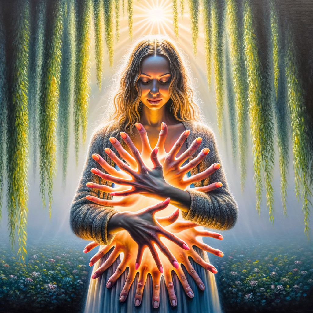 the year's threshold and unlocking, where the past lets go of and becomes the future; the place of caught breath, the door of a vanished house left ajar..." In the style of Megan Duncanson, Jennifer Lommers & Didier Lourenco.