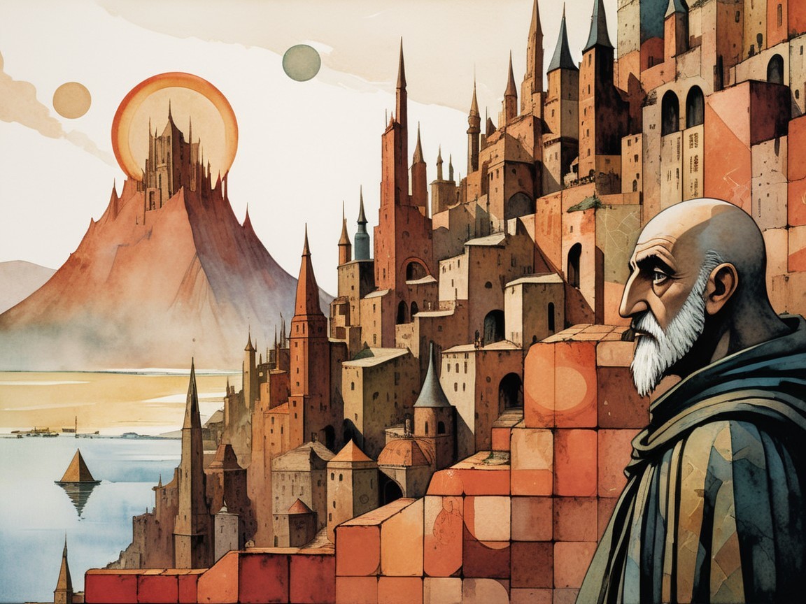 Ethereal haze caresses stones, each corner bathed in peace,