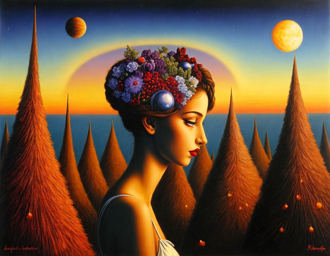 Surreal Portrait of a Woman with Floral Adornments