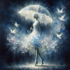 A monochromatic rococo-style illustration depicting the head and bust of a woman. She faces forward with a neutral expression, large eyes, and full lips. Her delicate facial features are rendered using stippling for shading and texture. Her hair appears to be made of scrolling filigree patterns, primarily in