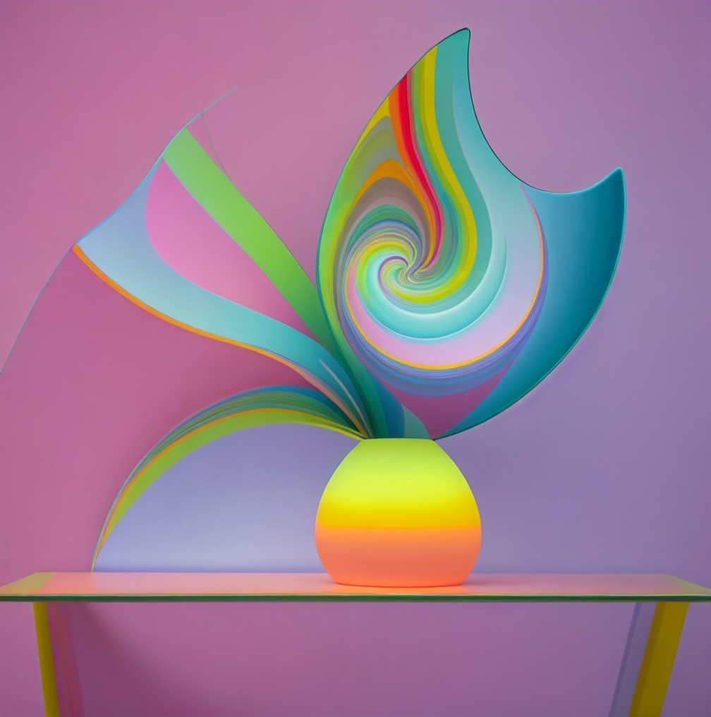 + Prompt:mesmerizing art illusion by seamlessly blending three distinct images of multicolored objects into a single cohesive painting, picture frame around whole image, vignette, reduce size to fit within a frame, bright pastel colors, cartoony, triple image, straight lines on the sides. All object are completely within frame, Fibonacci composition, in the style of soft, blended pastels