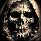 Colossal Skull and Dark Castle in Chaotic Landscape