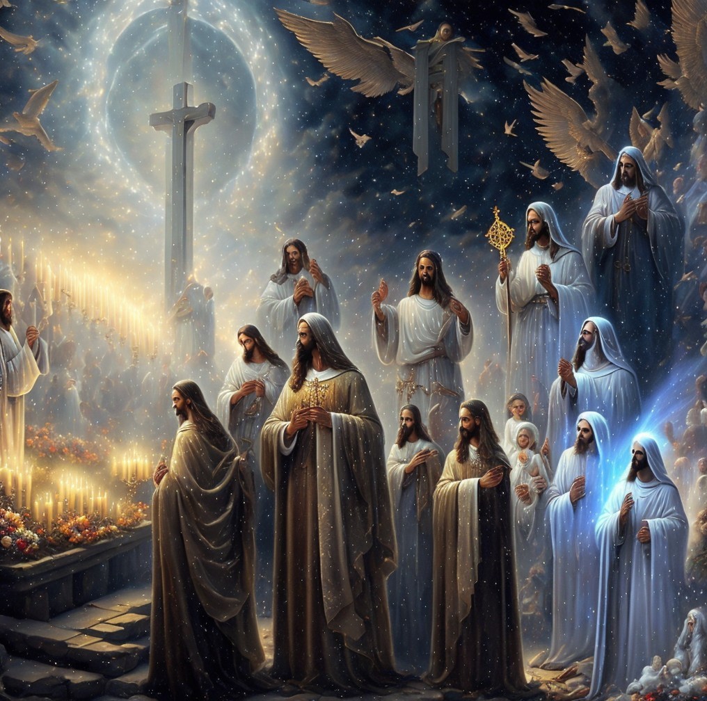 See pic 4 is Mom, and pic 6 tells the story of today 2025. Jesus sitting on his throne 2,000 years ago the light ray on him and Mother Linda connected to Mother Mary 2025 denoting the Spirit is upon Cody's Eye 2025A.D. the Jesus halo Avatar standing=TODAY.