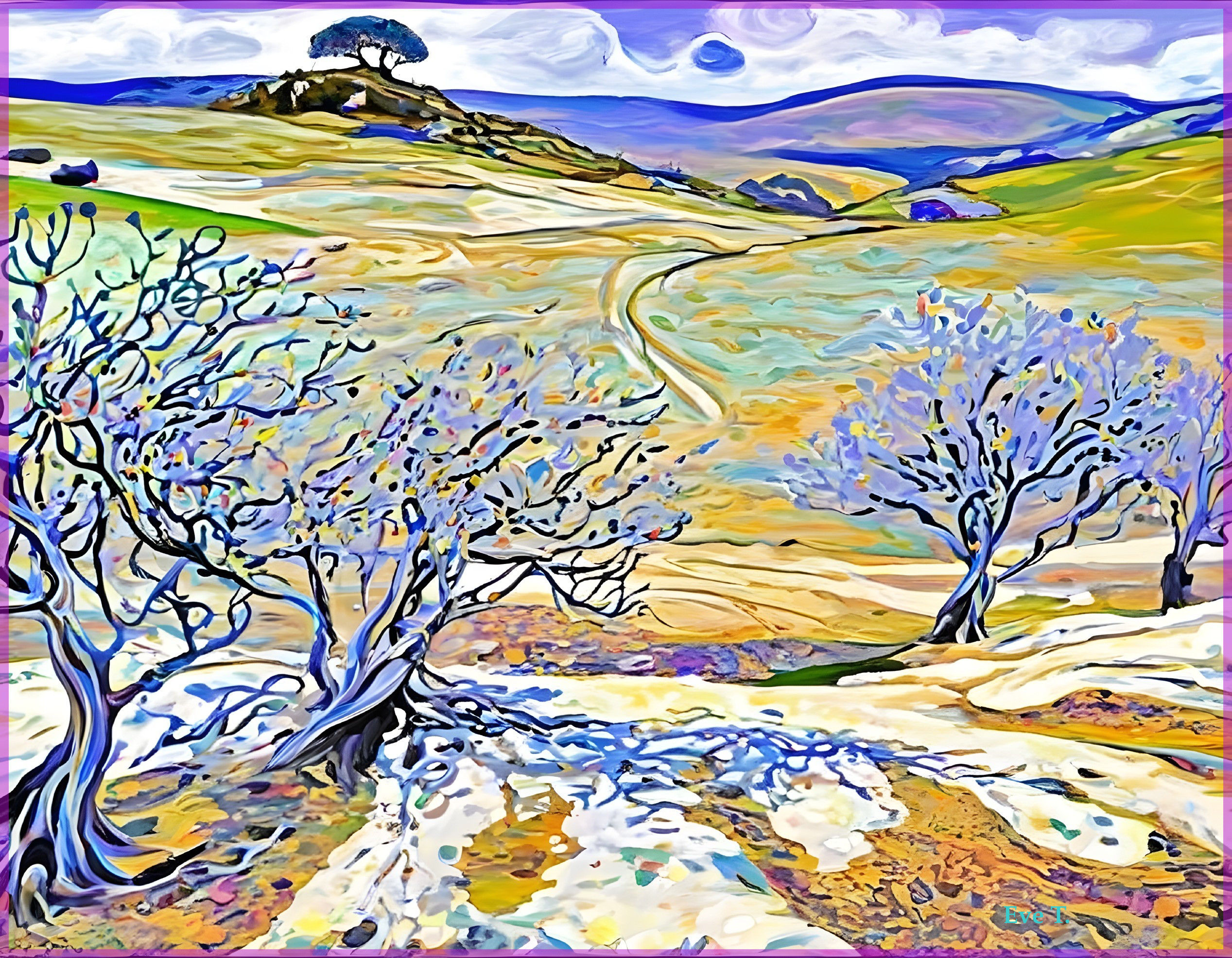 Twisted hawthorn trees on a winters day, Dartmoor.