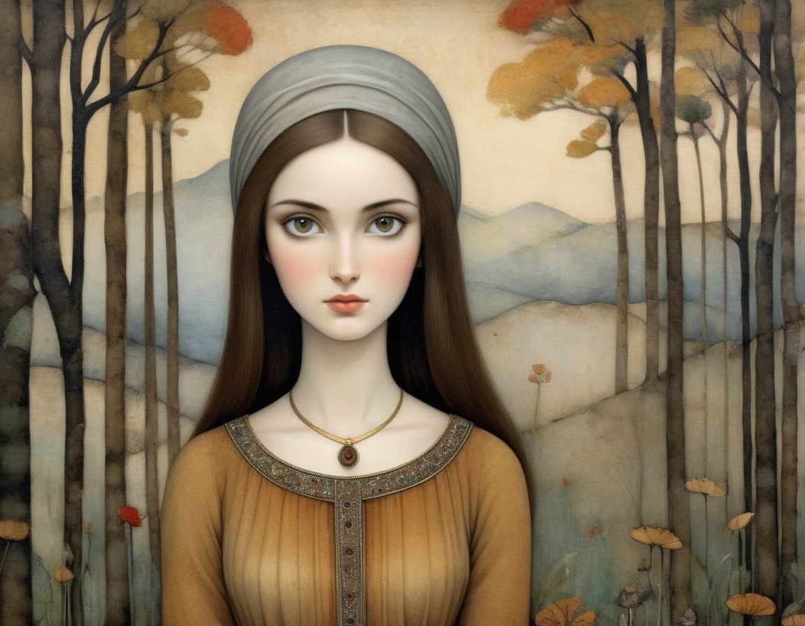 Portrait of a Young Woman in a Tranquil Forest Setting