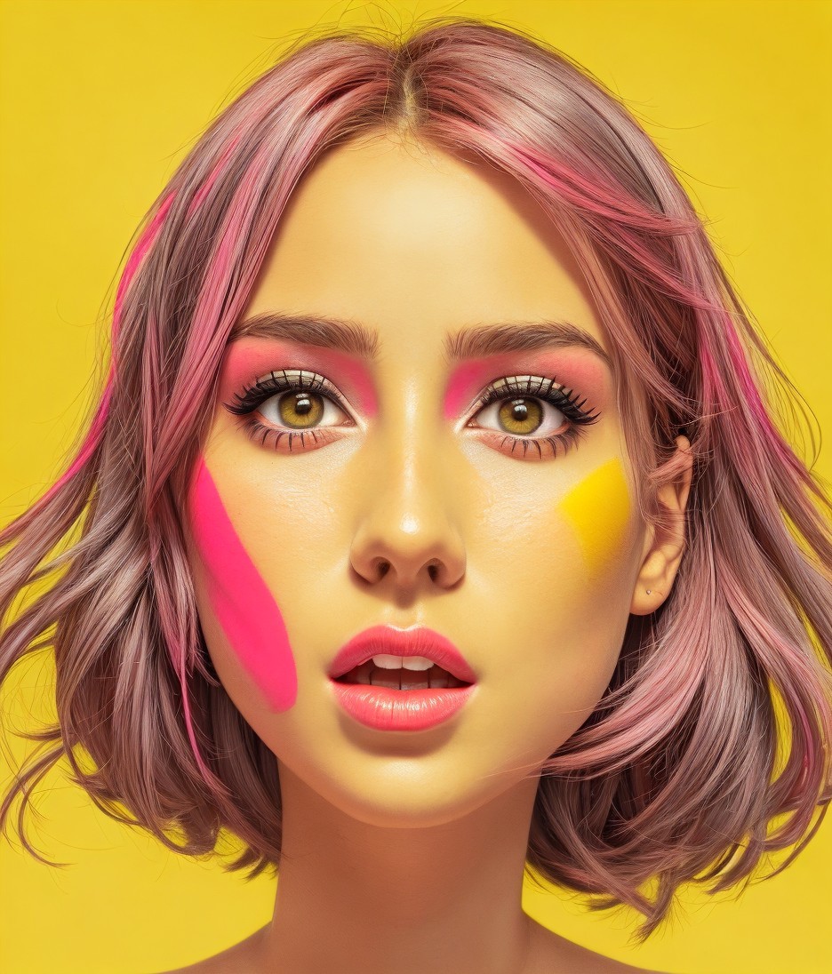 Comical pencil and charcoal sketch, stylized Portraiture of girl in astonished mood, comic book art, triadic color scheme pink red yellow, Hyper-Structured image, face in great details and accuracy, intricate stylized hairstyle, 3d effects 1.8, raytraced shadows 1.8, Legit emotional reactions, perfect skin texture, perfectly flowing emotions, perfectly resonated aesthetics, Peach Fuzz lighting, Pastel Colorizations, Figurative Art, Multidimensional, intricate complex filigree by Gerald Scarfe, anisotropic filtering 1.7, luminosity 1.3, vector 9:5, beautiful composition 1.9, coffinwood 1.7, tints of anthotype print, pencil sketch art by Overton Loyd and Gerald Scarfe, unique, quilling, quaint, synthetic, comical essence, tints of linocut, hues, grain, blurry aura,