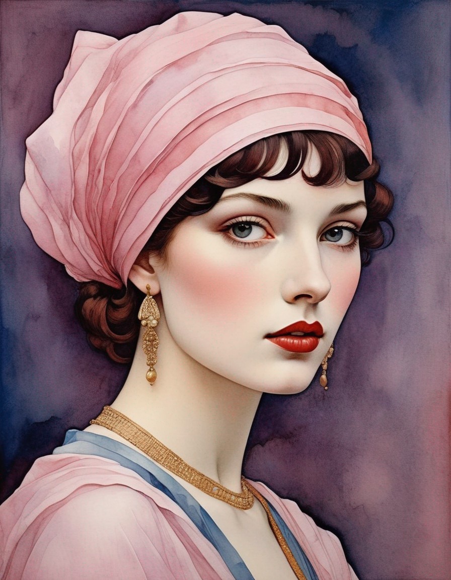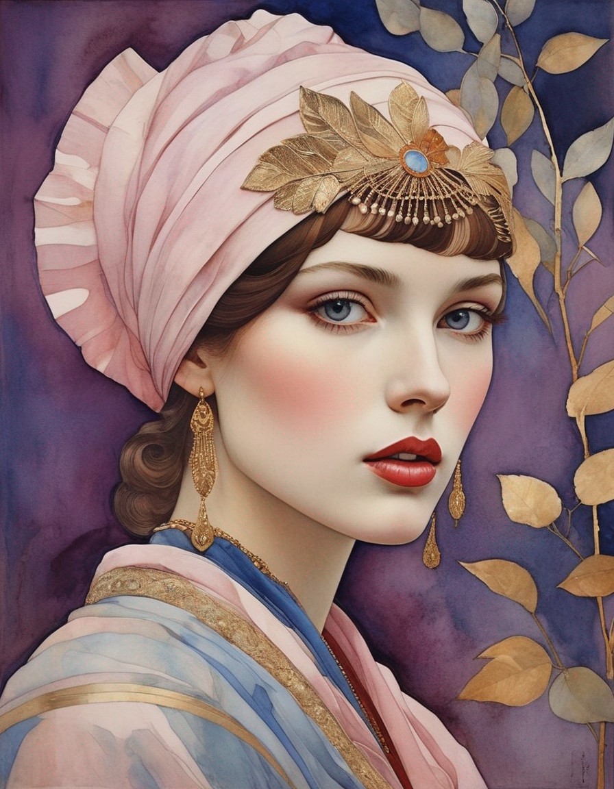 Illustration of a Woman with Blue Hair and Gold Accents
