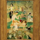 A vibrant, mystical artwork featuring ethereal women adorned with intricate patterns and lush colors, surrounded by swirling designs and shimmering elements, evoking a sense of enchantment and beauty.
