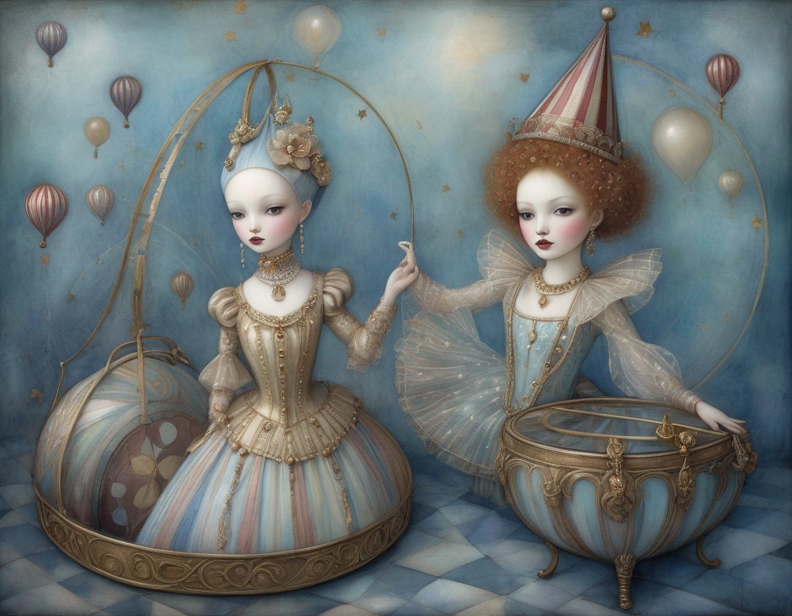 + Prompt:Circus performer. opulence, cirque de soleil style by Nicoletta Ceccoli, by Kay Nielsen