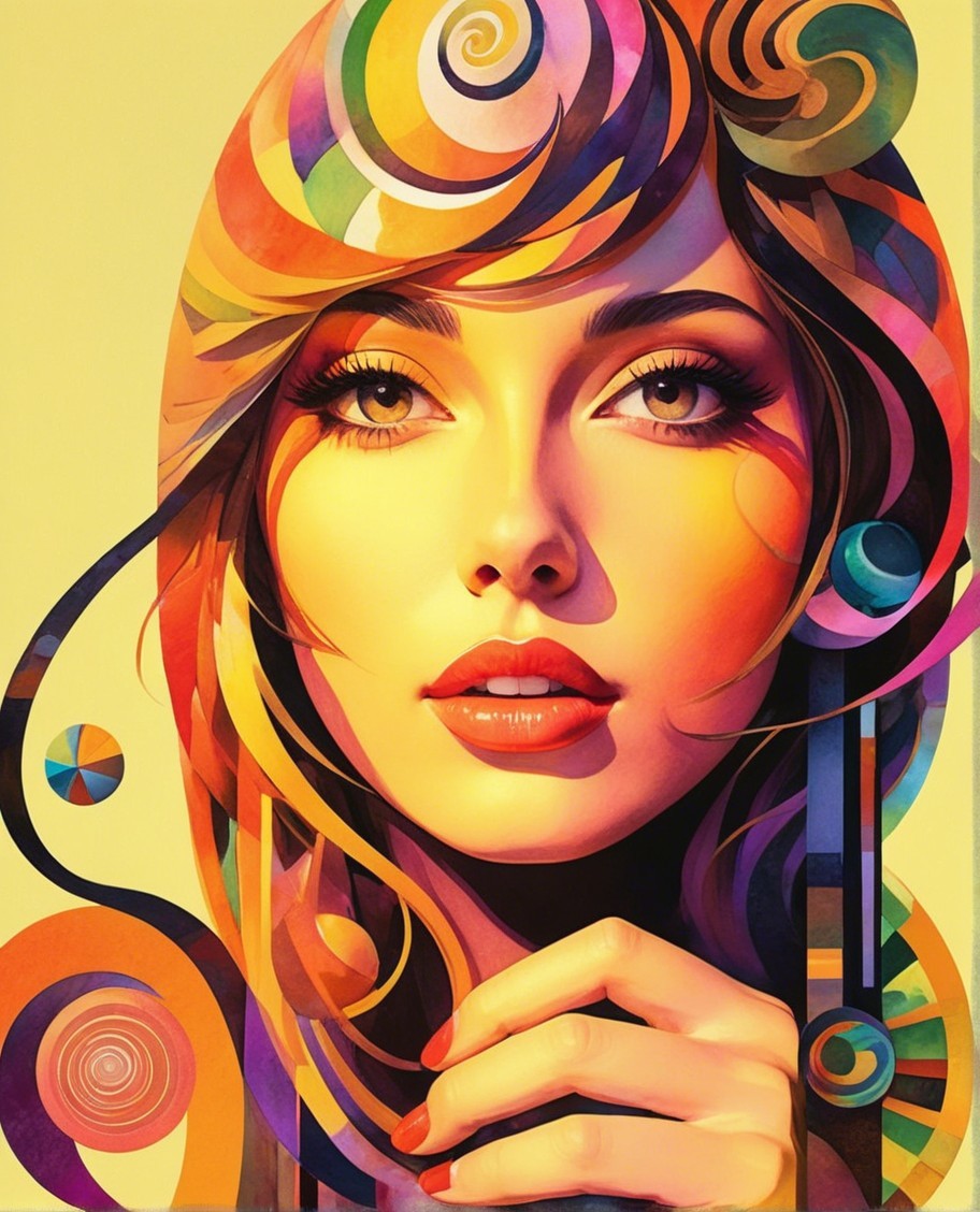 headshot consisting of panels and bold strokes and vibrantly abstracted swirls, dynamic spheres, vivid spirals, cymatics and catenaries, basking fractals, negative lucas numbers, mip-mapping, texture shading, very multicolored palette, stylization 1.5, sun-lit, golden hour mood, LiDAR point cloud, watercolor background, blooming and fading elements, symbolism of fleeting moments, pen and ink illustration by Tim Burton, dreamy surrealistic style, plasticity 1.8, layered wet-on-wet watercolor and ink technique, golden hour lighting. diffused warm golden light, anisotropic filtering, texture mapping, subsurface scattering, unique, rimmed reflections, displacement mapping 1.8, unique, trendy, perky, joyful coloring, misplaced reflections, hues by Ho Baron, ethereal glow, compelling gradient inking, overexpsed, low key lighting, RGB shifts and vertical scanlines, digital decay effect, displacement mapping, plasmatic hatchings, scratched edges, cel-shaded style, Henri de Toulouse-Lautrec influence, Bloom-Effect, interpolated, subsurface scattering, casually textured layers, anti-aliasing,tiny fabric patterns, crackles, catenaries, divisionism, colorful yam, ((warm coloring, (earth tones, dark-yellow, metallic-honey) 9:15), warmth in atmospheric depth of fragmented geometrical linework within a fractured, dissolving surrealism, watercolor and ink in fractured strokes shaping an outlined silhouette, rimmed lightning, shattered streaks dissolving into textures, cross-hatching, collided fierceful, brushed, soft energy, rupture and decay, fragile coloring and outlilnes. Deconstructed. fine-line drawing with airbrush techniques, intricate line-art with diffused highlights and reflections, mip-mapping, texture mapping 1.3, dappled and rimmed shimmer, low key lighting, low light, contrasting textures, tangled gemometrical features, translucent and obscuring, hazy and indistinct, misty, blend of warm reddish and warm yellow tones, shadow mapping 1.3, colorful gradients, texture mapping enhancing depth and scale,