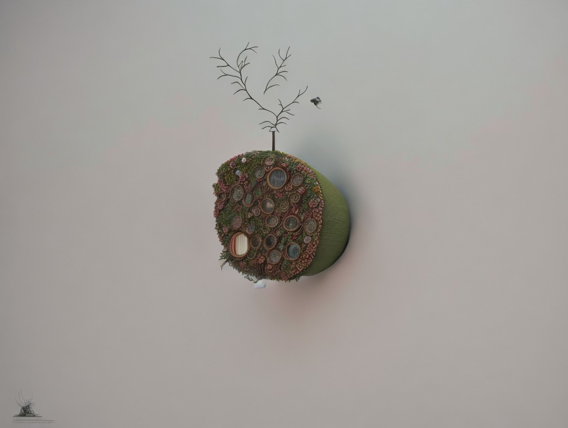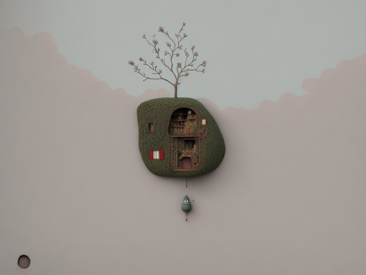 Whimsical Surreal Scene with Cozy Mound and Bird