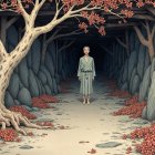 Cloaked Figure in Mysterious Circular Tunnel Scene