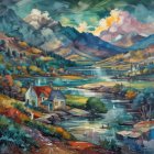 Tranquil River Landscape with Charming Houses and Hills