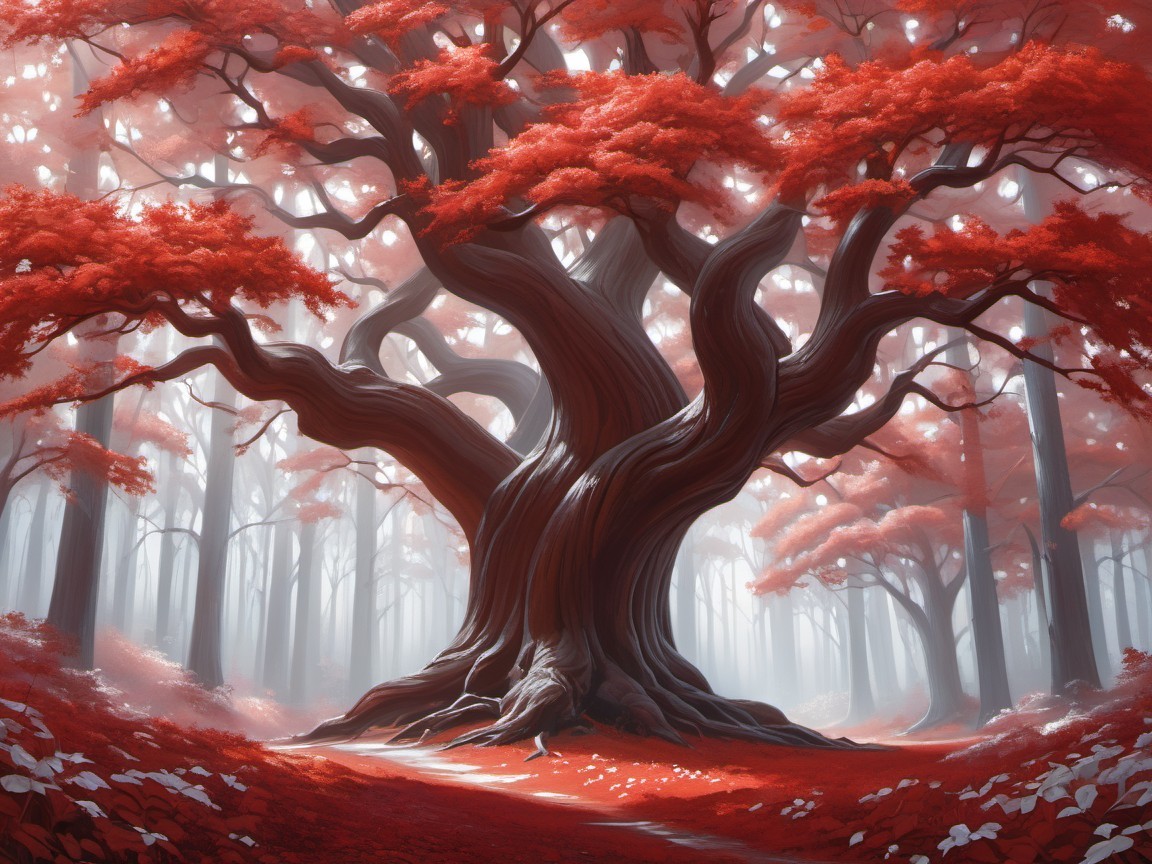 Like the purple and the silver forest these trees are all the same and this blood red look makes people scared to go through it after dark