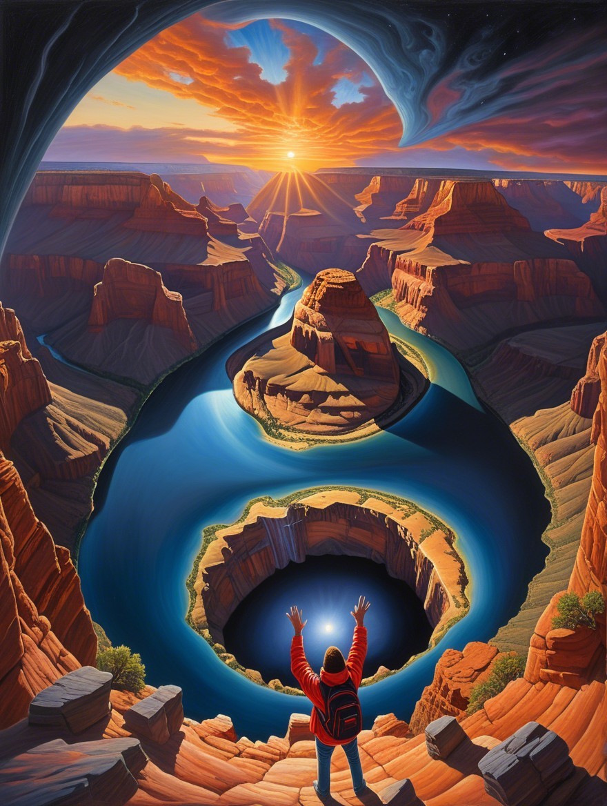 Vibrant Canyon Landscape with Starry Sky and River