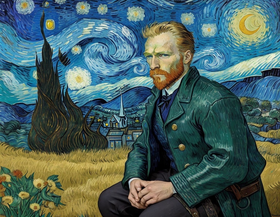 Prompt: Vibrant swirling skies, expressive brushstrokes, starry night, cypress trees, golden wheat fields, rustic village, dramatic clouds, moonlit scene, intense colors of cobalt blue, bright yellow, deep green, emotional intensity, post-impressionist style, dynamic composition, textured impasto technique, inspired by Norse mythology, fusion of Van Gogh's artistry with Odin's valor, by Vincent van Gogh, high-resolution, ArtStation.