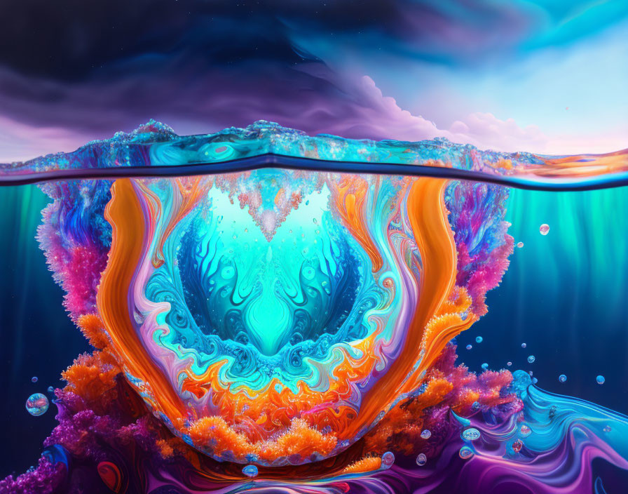 Colorful Surreal Artwork: Human Eye Amidst Swirling Shapes