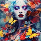 Portrait of a Woman with Butterflies and Flowers
