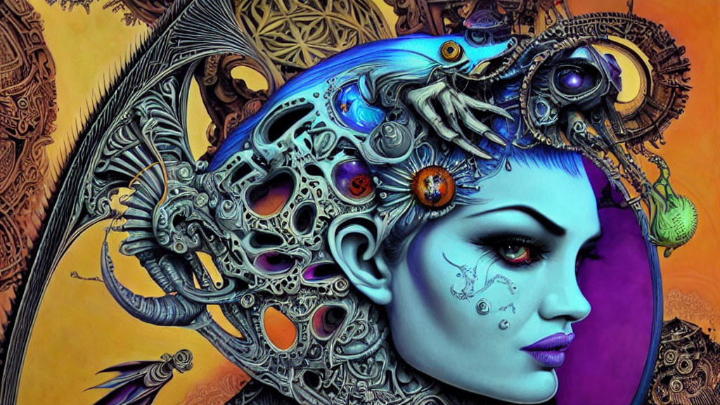 in a joe Fenton biomechanical Giger Escher Shepard Fairey Drew Brophy style shiva complex ultra-detail ultra-resolution ultra-clarity colors baby blue, purple green
