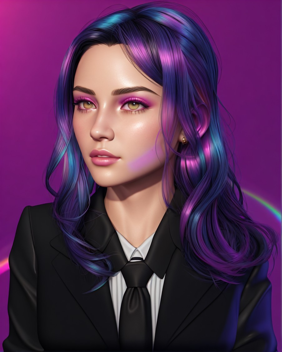 Vaporwave, headshot, dynamic lighting 1.7, colorful portraiture, Close up, fantasy artwork with tints of american gothic art, scales, shadow mapping 1.3, brushed texture with Schreger lines, hyper detailed, smooth lighting, dynamic lighting 1.7, 3d effects, plasticity 1.6, vivid colorization 1.7, inkpunk, nacre, beads, pearls, ornamental bioluminescent details 1.9, digital painting , complexion, ((background like brushed metal surface, chiseled textures, negative-digital)6:11), devilish orange eyes, triadic color scheme auburn black purple, vector 9:7, detailed ornamental clothing, iridescent fractal accents, fine streaks, maximalism, biomorphic details, tints of clockpunk, highlighted reflections, detailed reflections, hues, highly back-lit, chiaroscuro lighting, brightness 1.4, luminosity 1.3, plushy psychpomp scene 1.7, dark fantasy atmosphere, auracore, cottagegore, anisotropic filtering 1.7, beautiful intense alluring artwork, tints of steampunk 0.6, auburn color theme, colorful yarn, acid spill