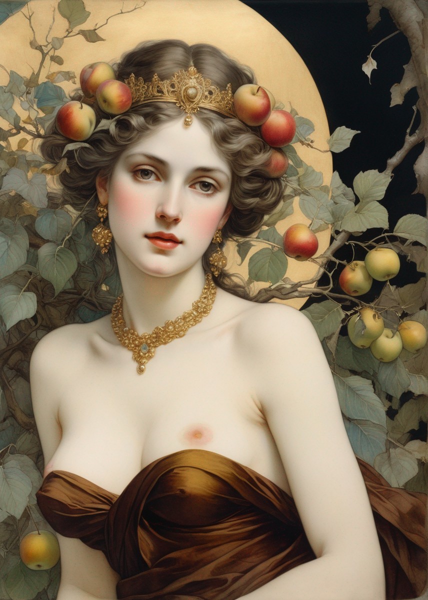+ Prompt:Hesperides is a dryad similar to Epimenides, but they live within golden apple trees.