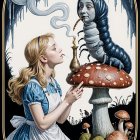 A surreal portrait features a young woman with striking platinum blonde hair, holding a cigarette. A butterfly rests on her face, while a cat and rabbit are playfully nestled beside her.