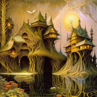 The image features a woman in a black dress sitting beside a man, both portrayed in a serene, painterly style. A mirror reflects the man's likeness, set against a backdrop of warm colors.