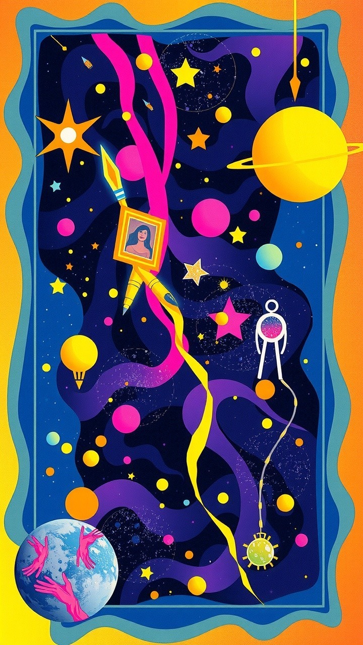 Vibrant Cosmic Scene with Colorful Planet and Stars