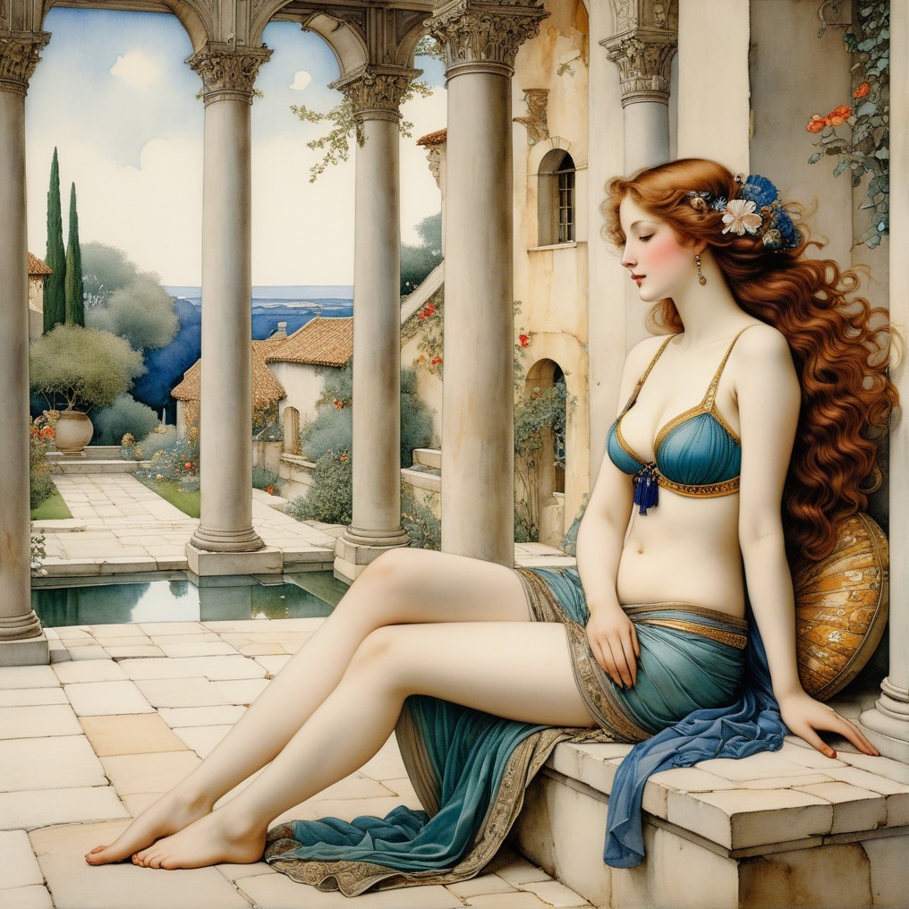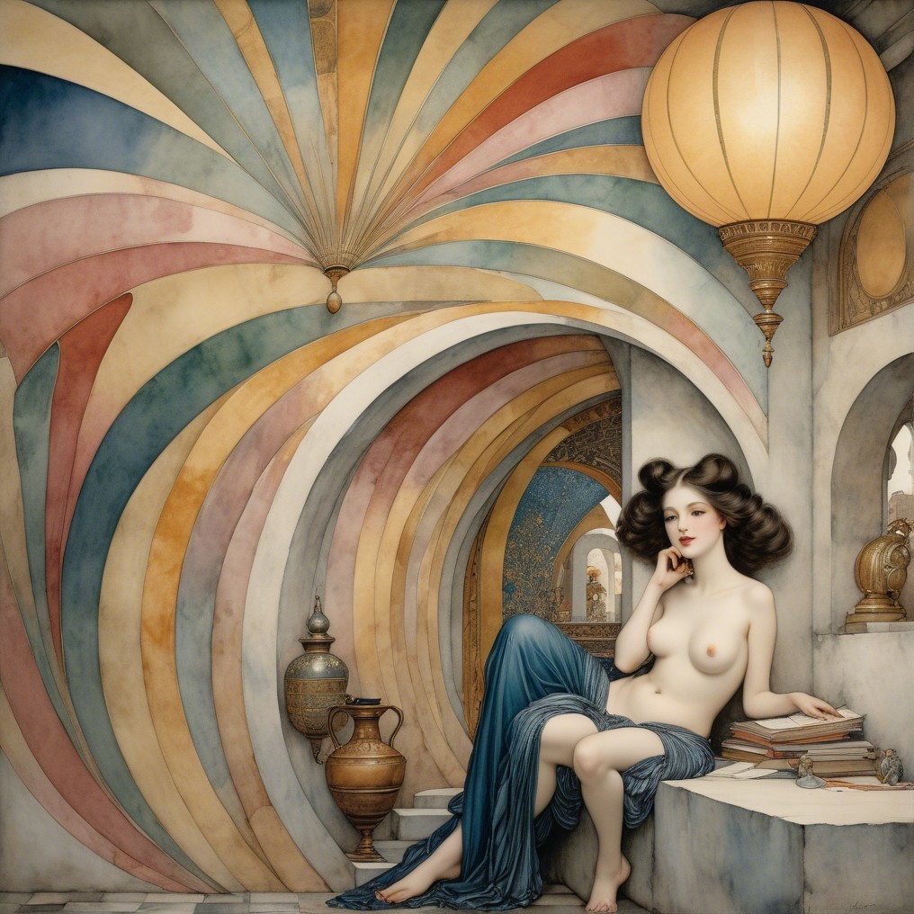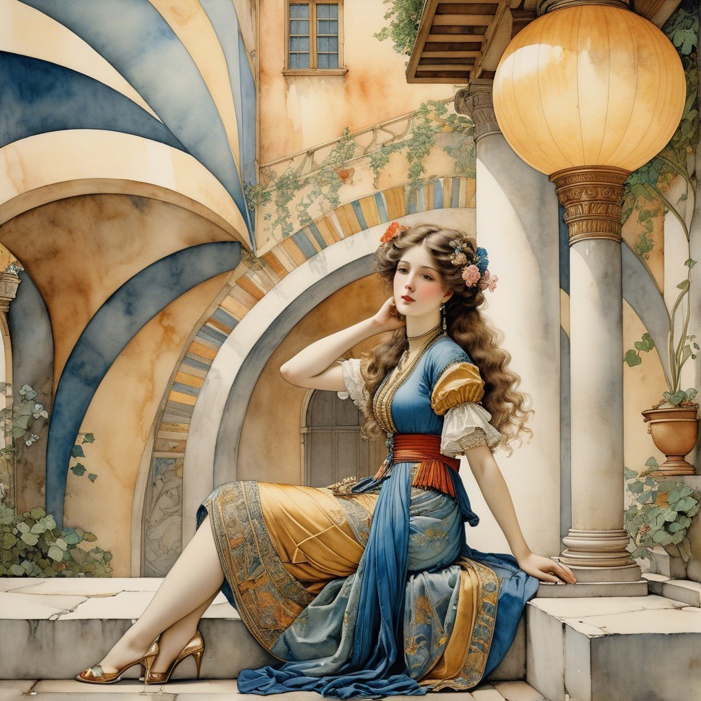 + Prompt:A masterpiece of unparalleled excellence)), ((( beauty sitting in an ancient courtyard scene in the style of John Frederick Lewis ))), Stunning watercolors, Pen and Ink, Pencil drawings, as if created by Michael Parkes, Arthur Rackham, Ernst Haeckel, Gustav Klimt, Jean-Baptiste Monge, Kandinsky, Tim Burton.: intricate 8k very attractive wallpaper hyperrealistic ultra detailed high definition colourful Ultra realistic Alexander Jansson 8k intricate very attractive intricate