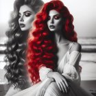 Glamorous Women with Red Hair in Vibrant Liquid Scene