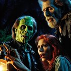 A trio of whimsical Muppet-style characters stands in a dark, shadowy setting. One has green skin and a mischievous expression, while the others have unique features that highlight their quirky personalities.