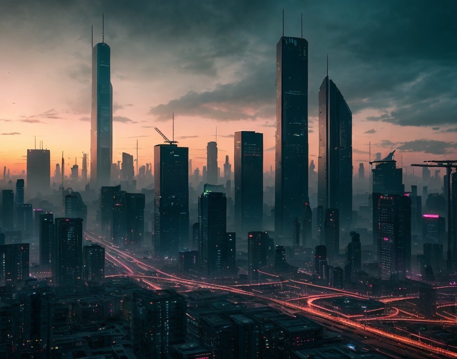 Amidst the urban decay, towering skyscrapers pierce the polluted atmosphere, their sleek surfaces marred by the scars of past conflicts and neglect. Neon signs, barely clinging to their frames, cast an eerie glow over the streets below, illuminating the faces of scavengers and cybernetically-enhanced outcasts as they navigate the maze-like alleys in search of sustenance and shelter.