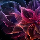A beautiful, large lotus flower blooms in shades of pink and purple, surrounded by soft, ethereal wisps and floating orbs of light, creating a serene and enchanting atmosphere.