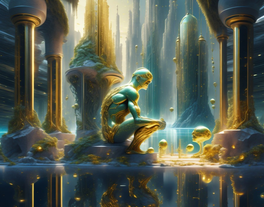 Otherworldly Figure Meditating in Serene Forest Setting