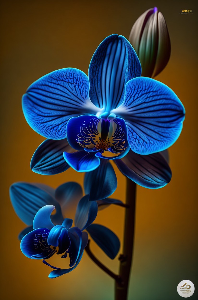 Vibrant blue orchid with intricate vein patterns on petals