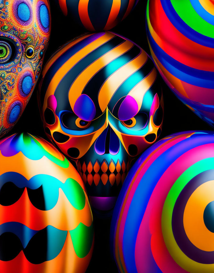 Prompt: An ultra hd detailed painting of of skullface harlequin troll dolls in many different types of zebra colorful birds by Victor vasarely and android jones, earnst haeckel, james jean. behance contest winner, generative art, baroque, intricate patterns, fractalism, movie still, photorealistic