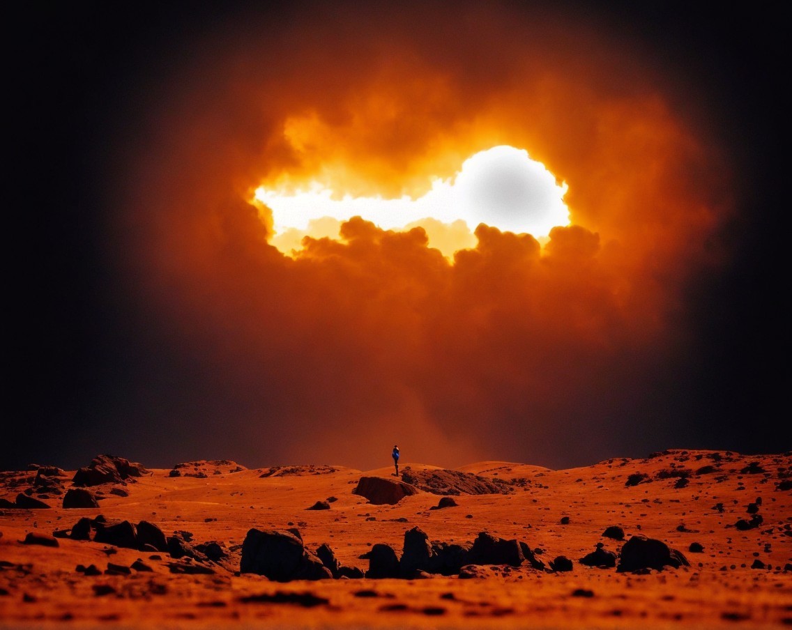 Dramatic Fire and Smoke Contrast in Dark Landscape