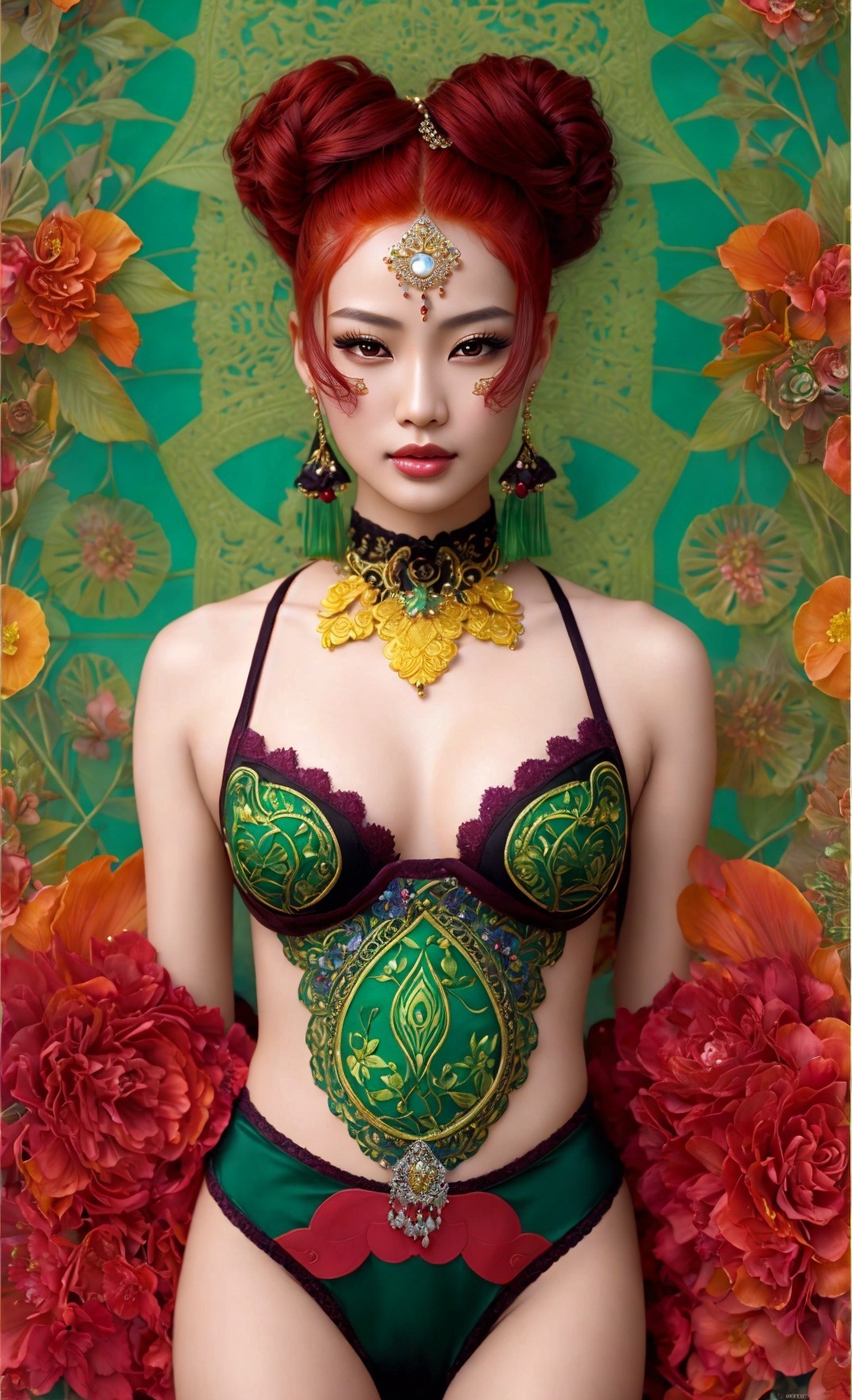 Prompt: gorgeous and elegant Asian lady with redhair, smooth and realistic portrait, smooth and intricate, high definition, realistic, clear and detailed eyes