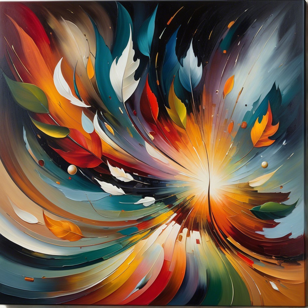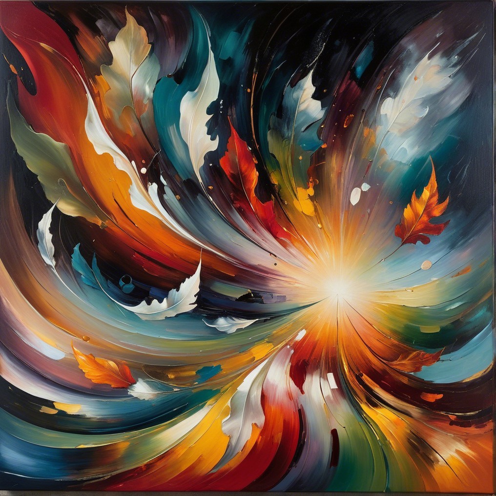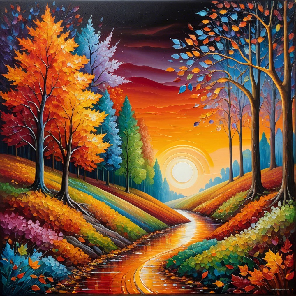 An imaginative and surrealistic work created with beautiful, shimmering autumn colours. Oil on canvas, rich application of paint and, despite everything, full of detail."