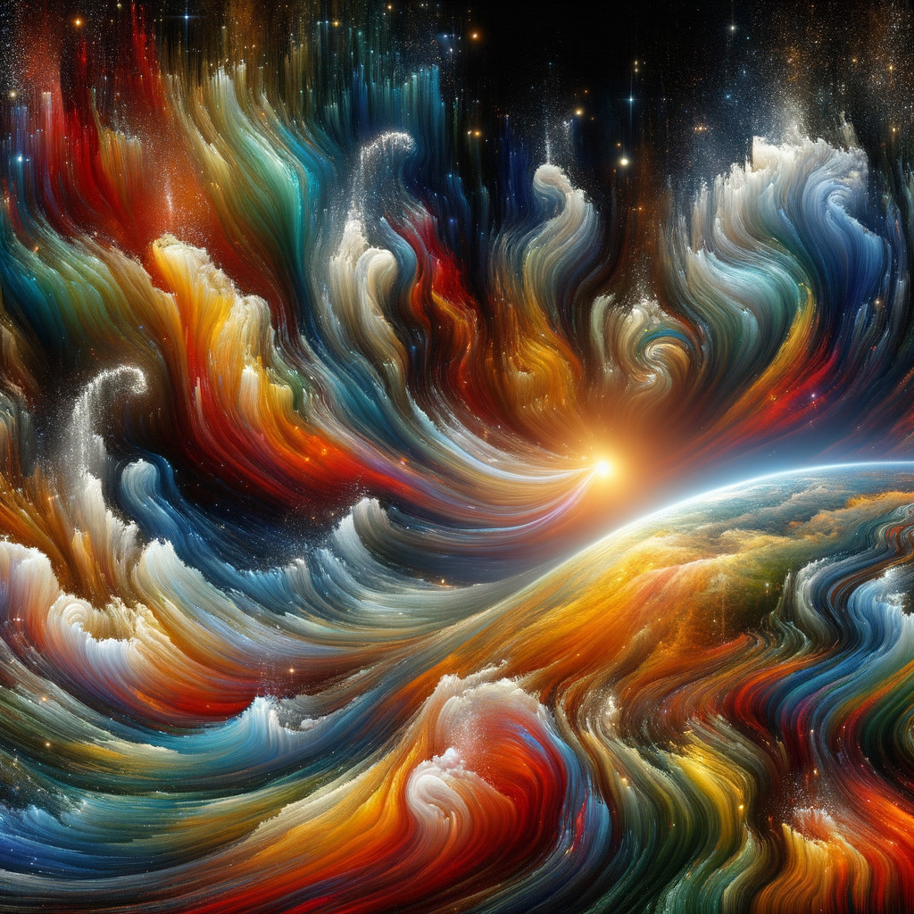 Prompt: "A view of the earth from space on 31.december – the colourful fireworks all over the world drift away from the earth in large streams and swirl in space as if they were streams of colour melting away.