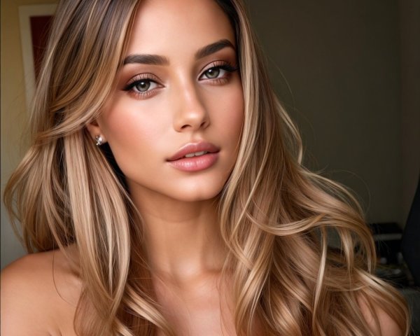 A young girl with long, straight blonde hair smiles softly. She wears a green jacket over a purple shirt, set against a blurred natural background with warm, soft lighting.