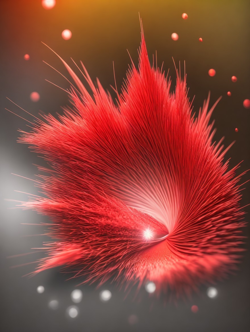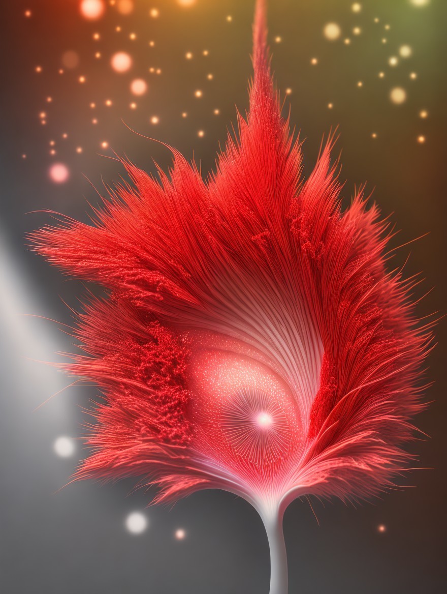 A close-up of a vibrant red flower with delicate, feathery petals illuminated from behind, creating a luminous effect.
